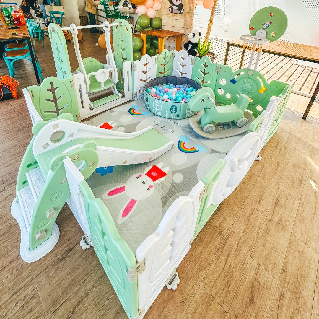 Nuestras áreas de juego están diseñadas para niños de 2 a 5 años, con opciones adaptables a diferentes tamaños de grupos.